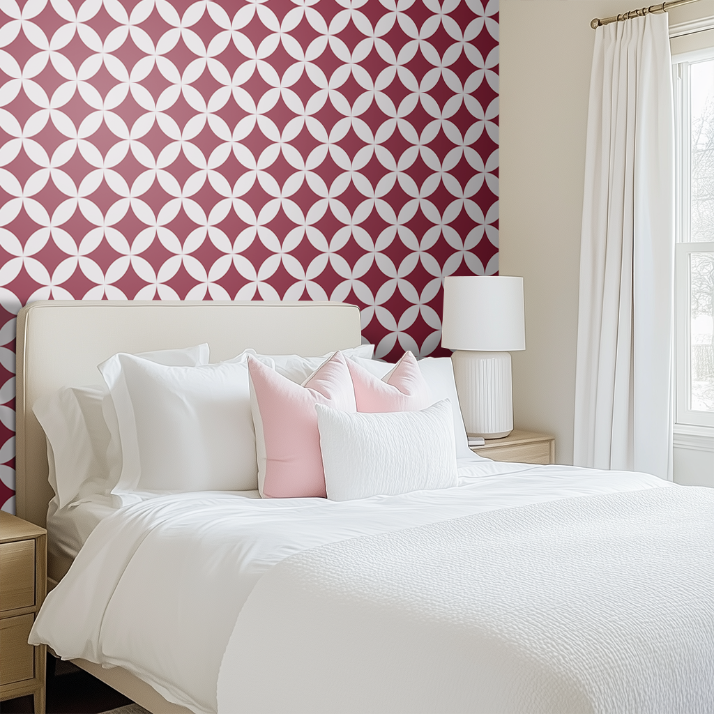 Alpha Legacy brings a bold, timeless touch to your space with its striking maroon and ivory geometric pattern. The interlocking circles create a sense of movement and elegance, making it perfect for statement walls or modern interiors. Sophisticated yet versatile, this peel-and-stick wallpaper adds a confident style that feels both classic and fresh