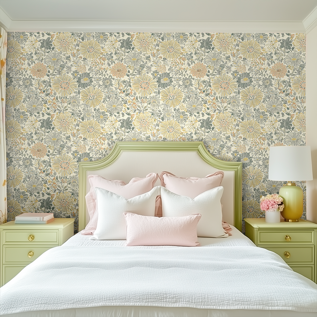Annelouise is a charming floral wallpaper that captures the whimsy of hand-sketched blooms in soft, sun-washed hues of buttercream, blush, and sage. The delicate, vintage-inspired pattern brings a graceful warmth to any space, evoking the feel of a countryside garden in full bloom. Perfect for cozy bedrooms, cheerful kitchens, or inviting living rooms, Annelouise adds a lighthearted elegance to your walls.