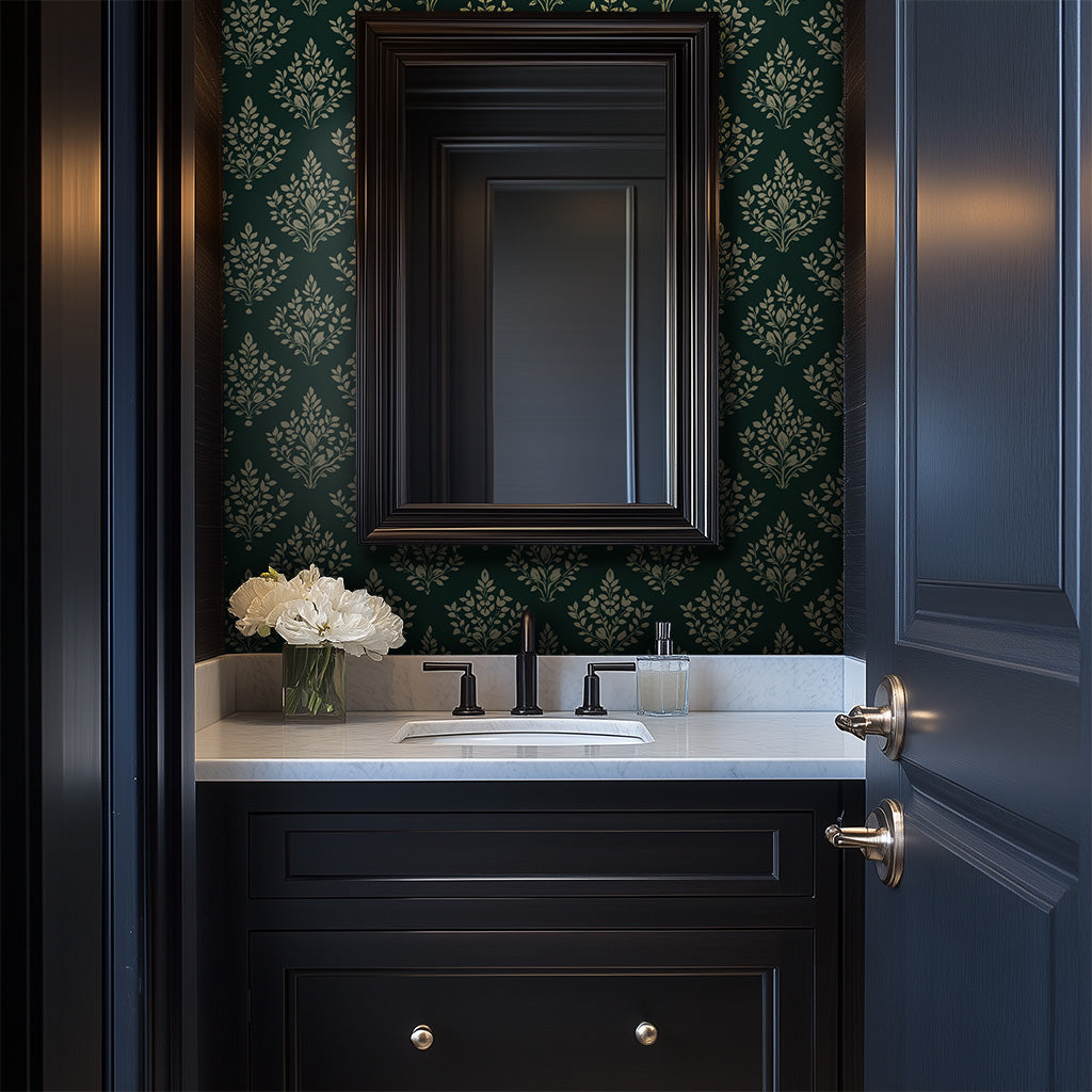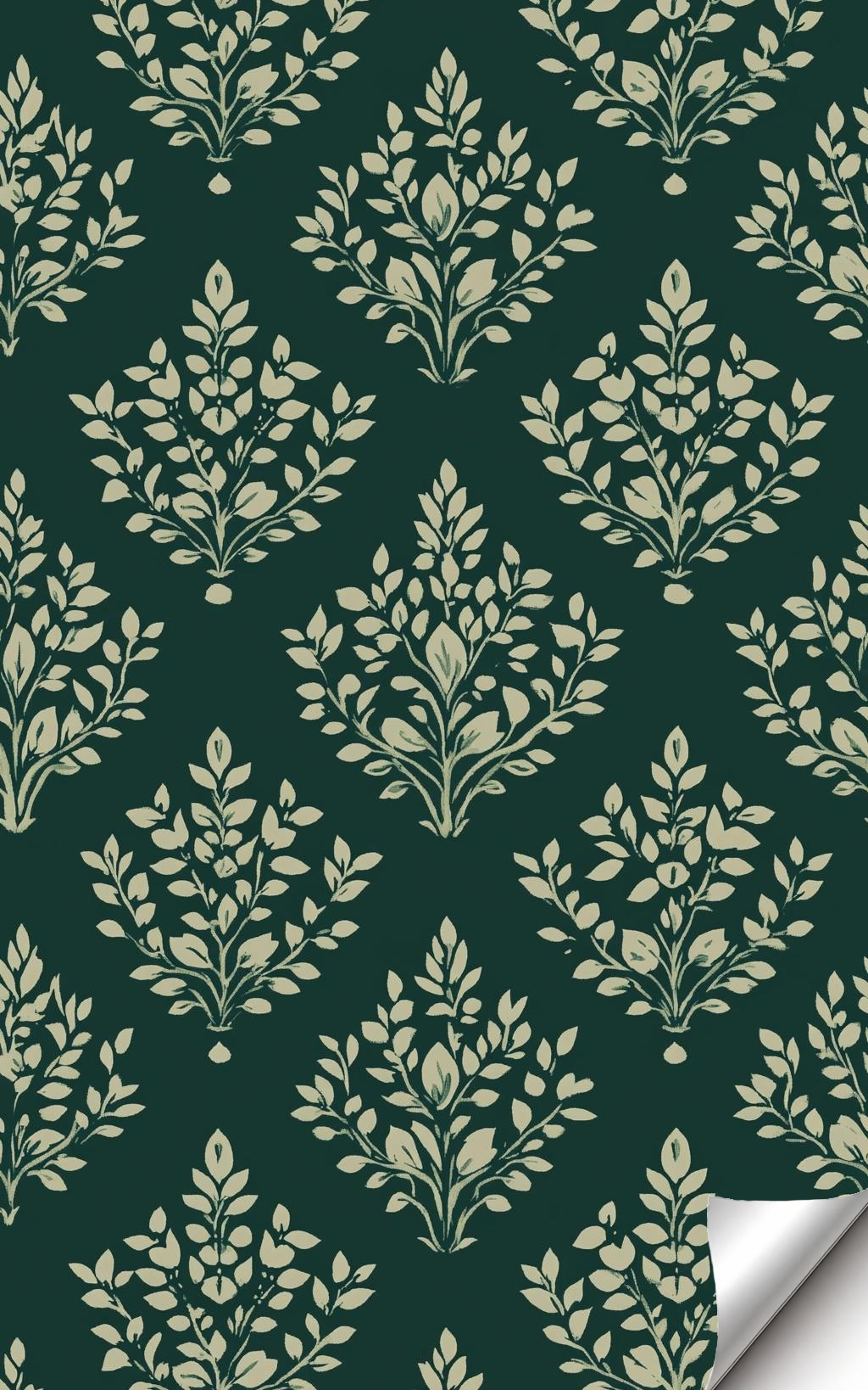 Ashton brings timeless charm with its hand-painted botanical motif in soft sage against a deep green backdrop. The balanced repeat and organic brushwork lend a refined, heritage-inspired look that feels equally at home in modern or traditional spaces.