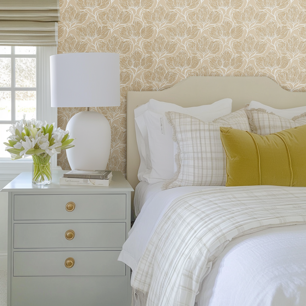 Elevate your room with the Biscotti Wallpaper, showcasing a unique sketch design that infuses gentle sophistication and coziness into your space. Its intricate pattern provides a delightful, exclusive accent that complements your décor perfectly without dominating the room.