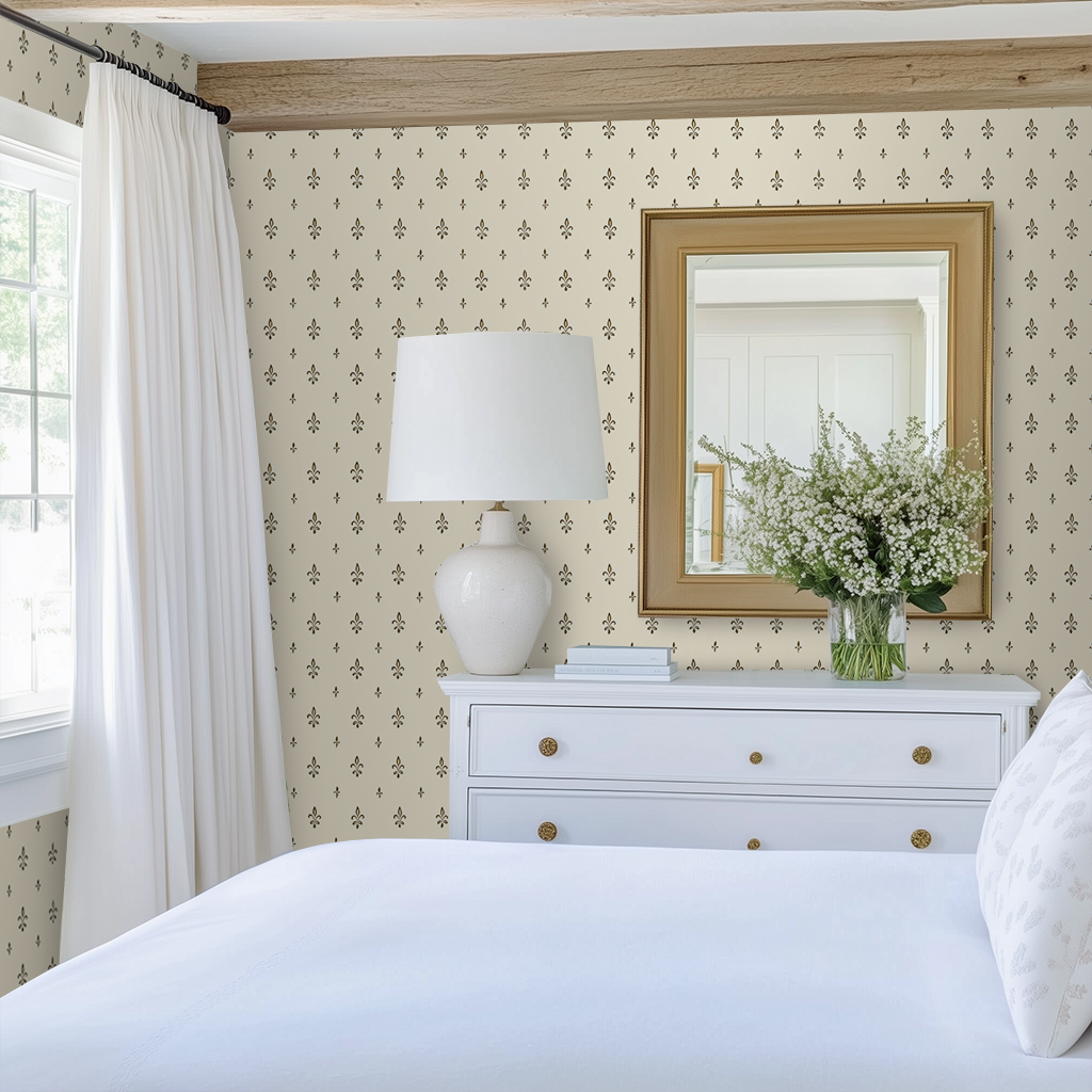 Celine is a timeless wallpaper that brings the elegance of classic French design to your walls with its delicate fleur-de-lis motif. The subtle ivory and warm bronze palette adds a soft, regal touch, perfect for creating sophisticated, understated backdrops. Whether gracing a formal dining room or a cozy study, Celine evokes a sense of quiet luxury and heritage charm.