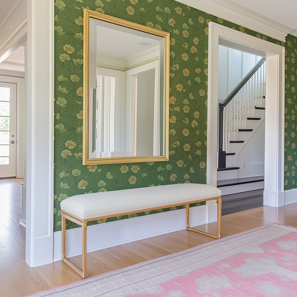 Clover Wind is a lively botanical wallpaper that captures the playful sway of garden blooms on a fresh, leafy green backdrop. The soft yellow flowers and textured leaves create a cheerful, vintage-inspired charm that feels both lighthearted and timeless. Ideal for kitchens, sunrooms, or cozy nooks, Clover Wind brings a touch of sunny countryside whimsy indoors.