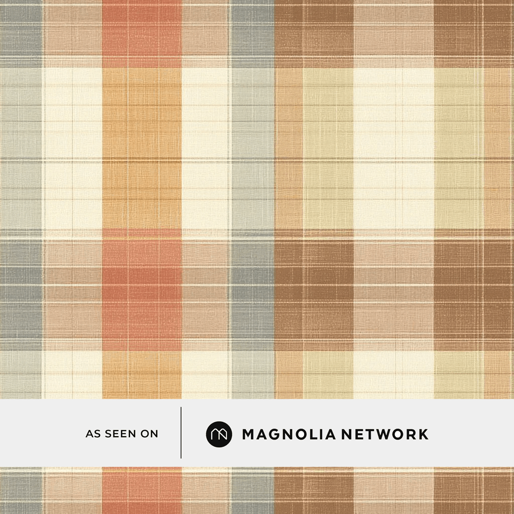 The Cozy Cottage Wallpaper features a classic plaid pattern in a warm, earthy palette of soft oranges, browns, creams, and muted blues. Its timeless design brings a cozy, rustic charm to any space, making it a perfect choice for creating a welcoming and relaxed atmosphere. Ideal for kitchens, living rooms, or anywhere you want to add a touch of vintage-inspired comfort.