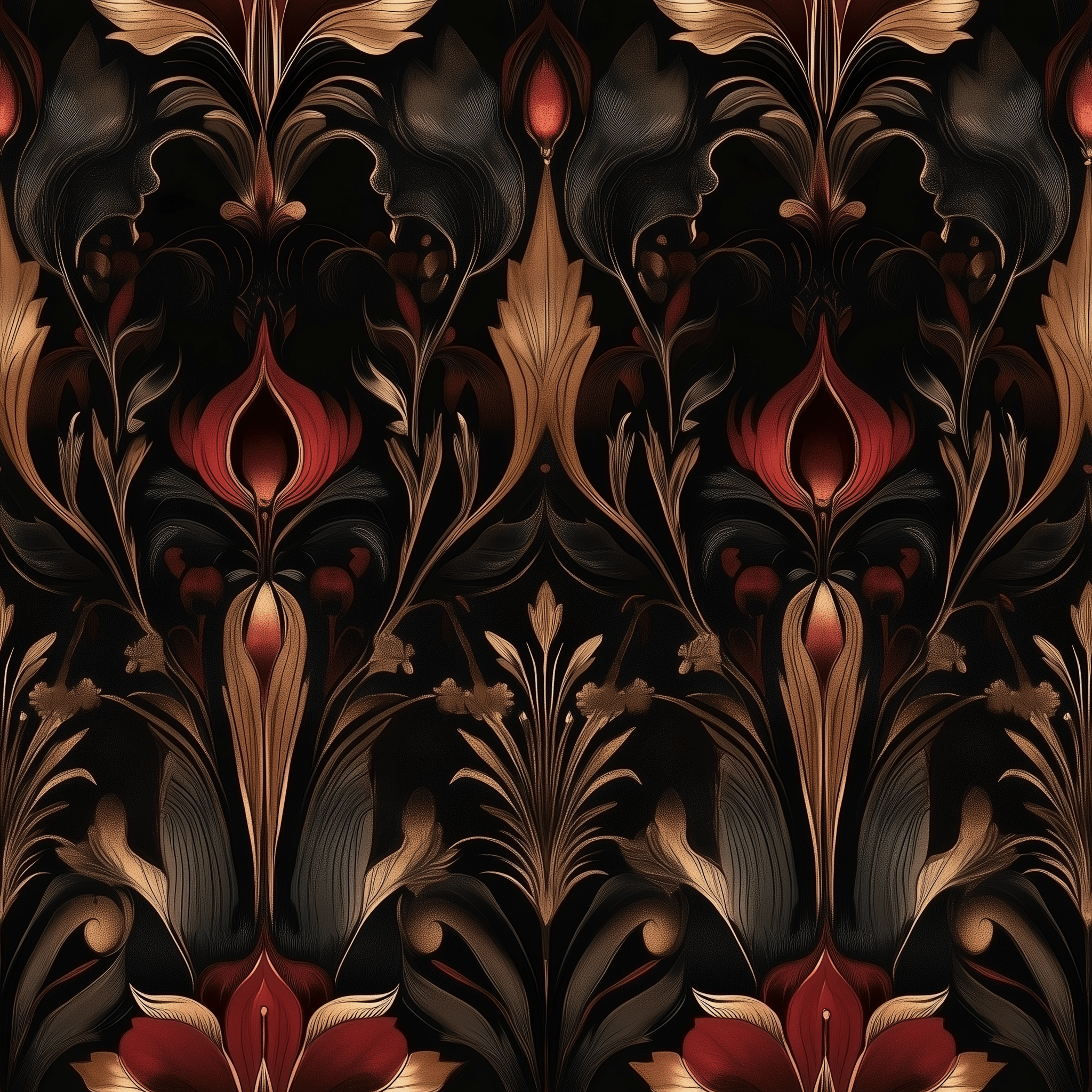 Crimelle is a bold, baroque-inspired floral with rich crimson, gold, and obsidian tones that bring drama and depth to any room. Its intricate, high-contrast pattern exudes opulence, making it ideal for moody dining rooms or sultry lounges. The design feels both decadent and timeless; perfect for those who want their walls to whisper luxury with a dark edge.