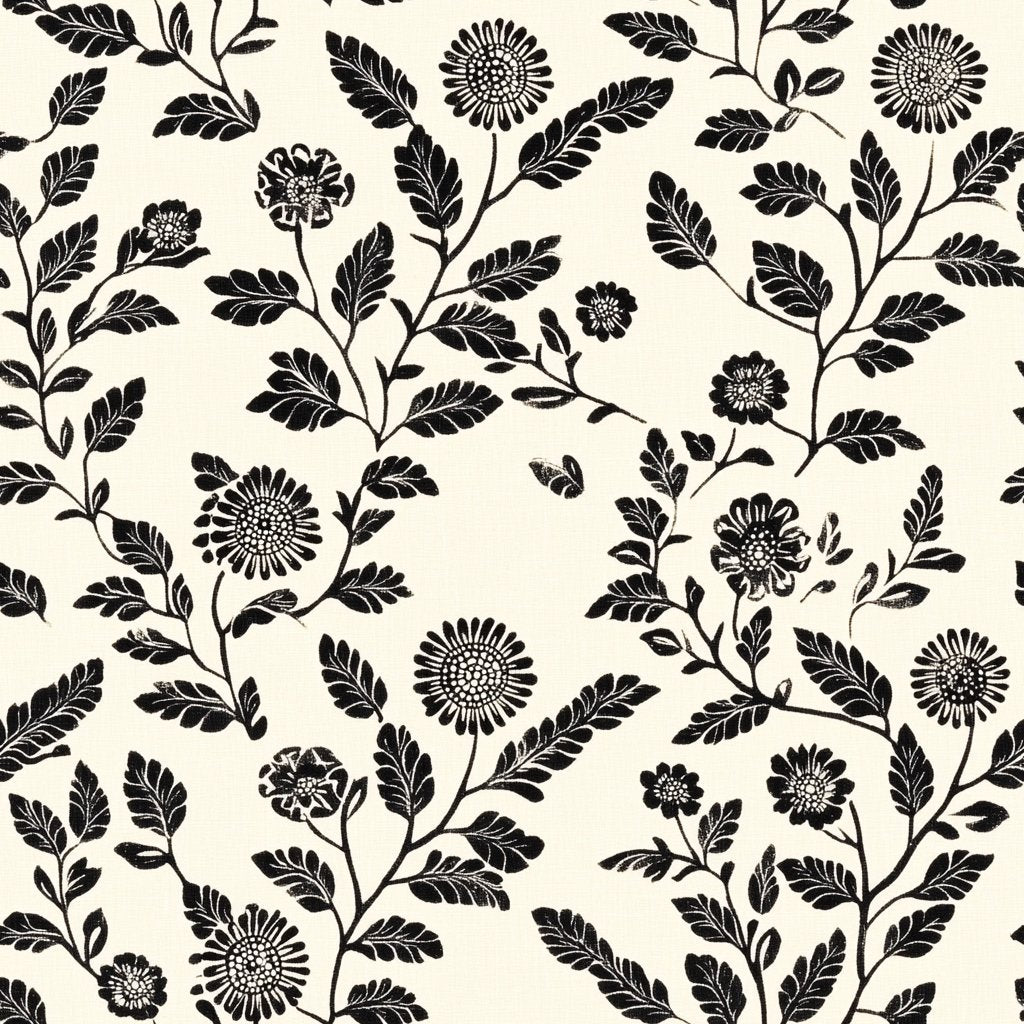 A classic black-and-white floral design featuring bold, intricate patterns of leaves and blossoms. Perfect for adding a timeless touch of elegance and sophistication to any room.