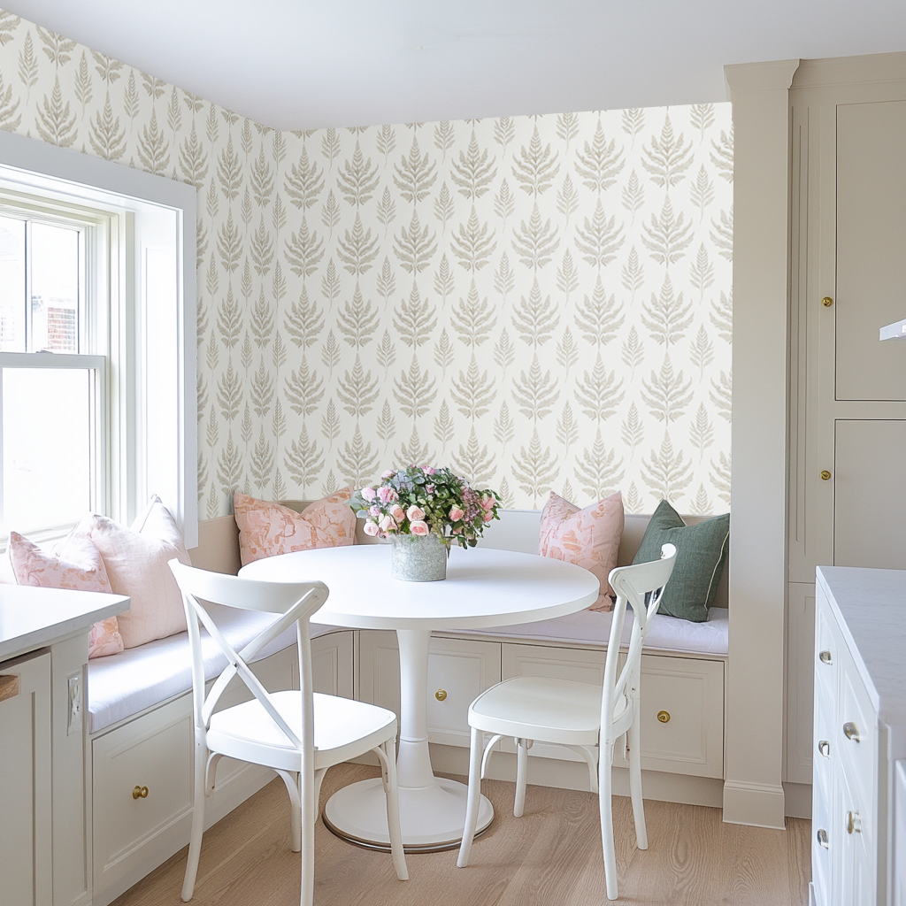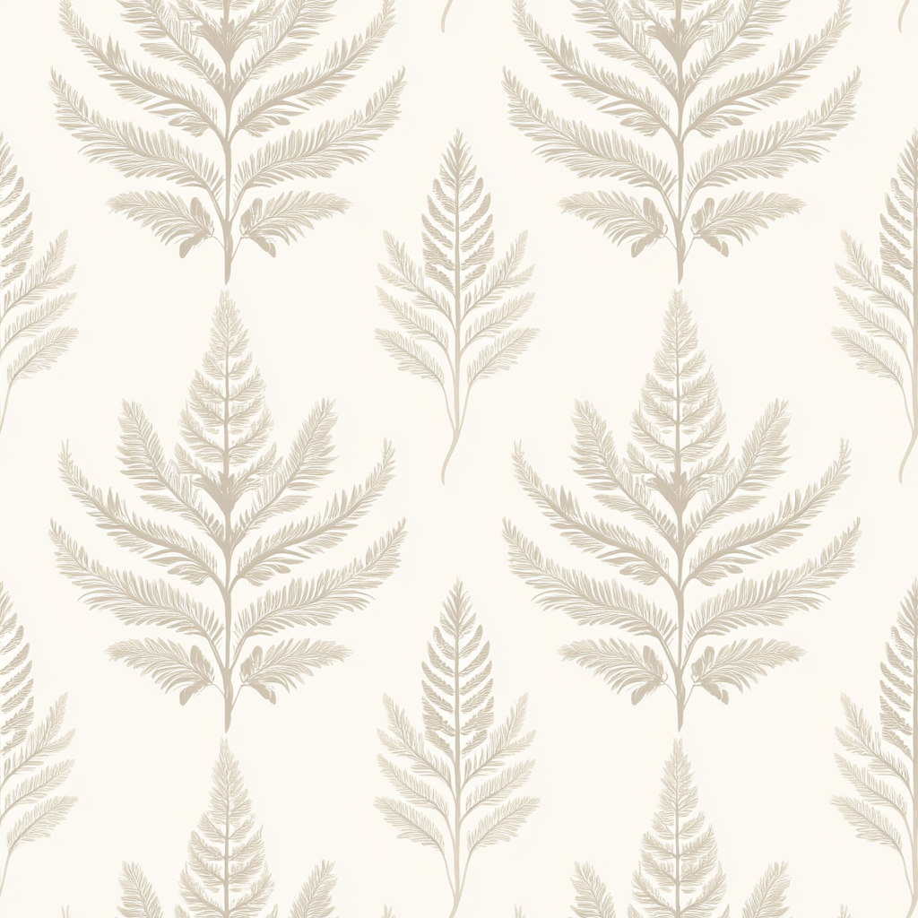 Forest Dusk offers a grounded take on botanical design with graceful fern fronds in a soft beige tone. The repeating silhouette feels serene and elevated—perfect for creating a neutral backdrop that still has personality.