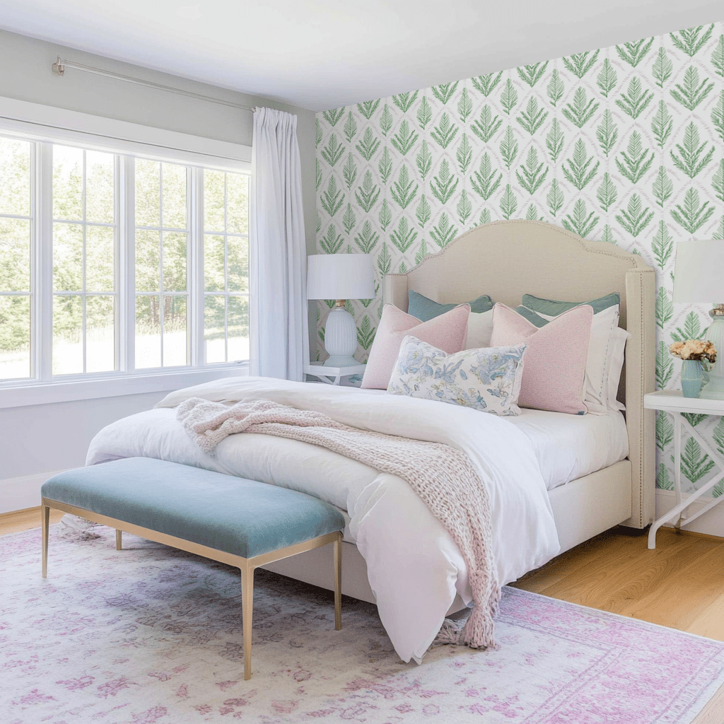 Inspired by the quiet rhythm of evergreens, Forest Path brings a grounded, organic feel to any room. Its symmetrical layout and hand-drawn branches make it feel structured yet soft - a fresh take on nature.