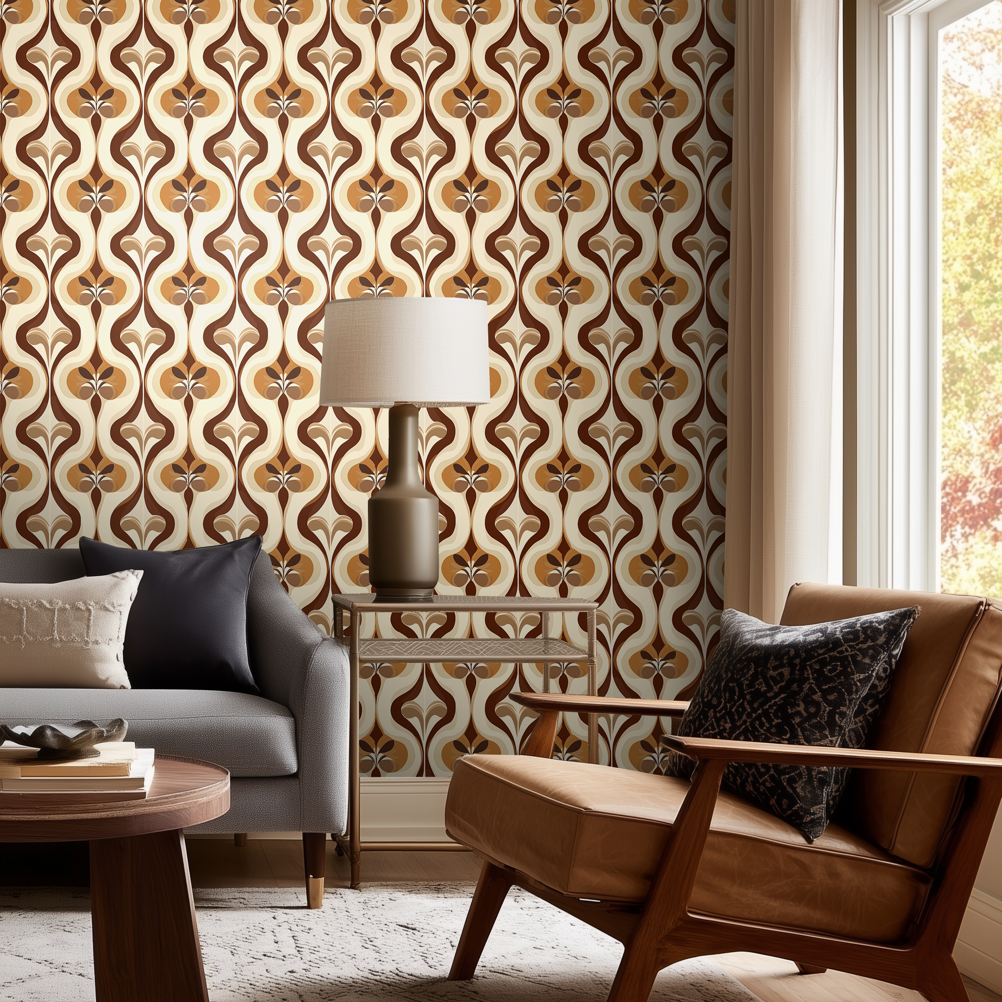 Funky Flow brings a wave of movement and rhythm to your walls with its hypnotic curves and fluid design. Warm earth tones in chocolate, caramel, and cream swirl together, creating a sense of energy and depth. This wallpaper is perfect for adding a retro yet sophisticated vibe to mid-century or contemporary interiors. Elevate any space with its dynamic, flowing aesthetic that never goes out of style.