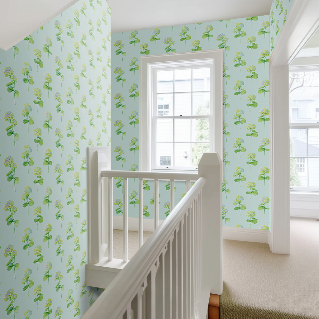 Infuse your space with a breath of fresh, alpine-inspired design. Glacial Ice Flowers features small watercolor hydrangeas in soft green and golden hues scattered across a frosty blue background. The generous spacing and delicate detailing give this wallpaper a breezy, elevated feel—ideal for contemporary kitchens, stylish laundry rooms, or refined children's play areas. A touch of frost, a hint of bloom—pure elegance.