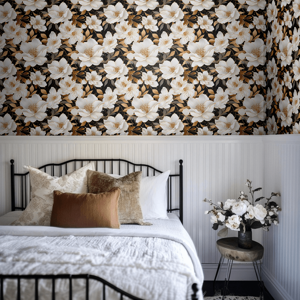 Golden Bloom Wallpaper is a luxurious fusion of sophistication and nature-inspired opulence. This exquisite wallpaper transforms your space into a haven of elegance, featuring delicate white florals gracefully entwined with gold accents. The intricate details and radiant hues create a harmonious dance of light and shadow, adding depth to your walls. Elevate your interior with the timeless allure of this floral masterpiece, where every petal tells a story of refined beauty and timeless sophistication.
