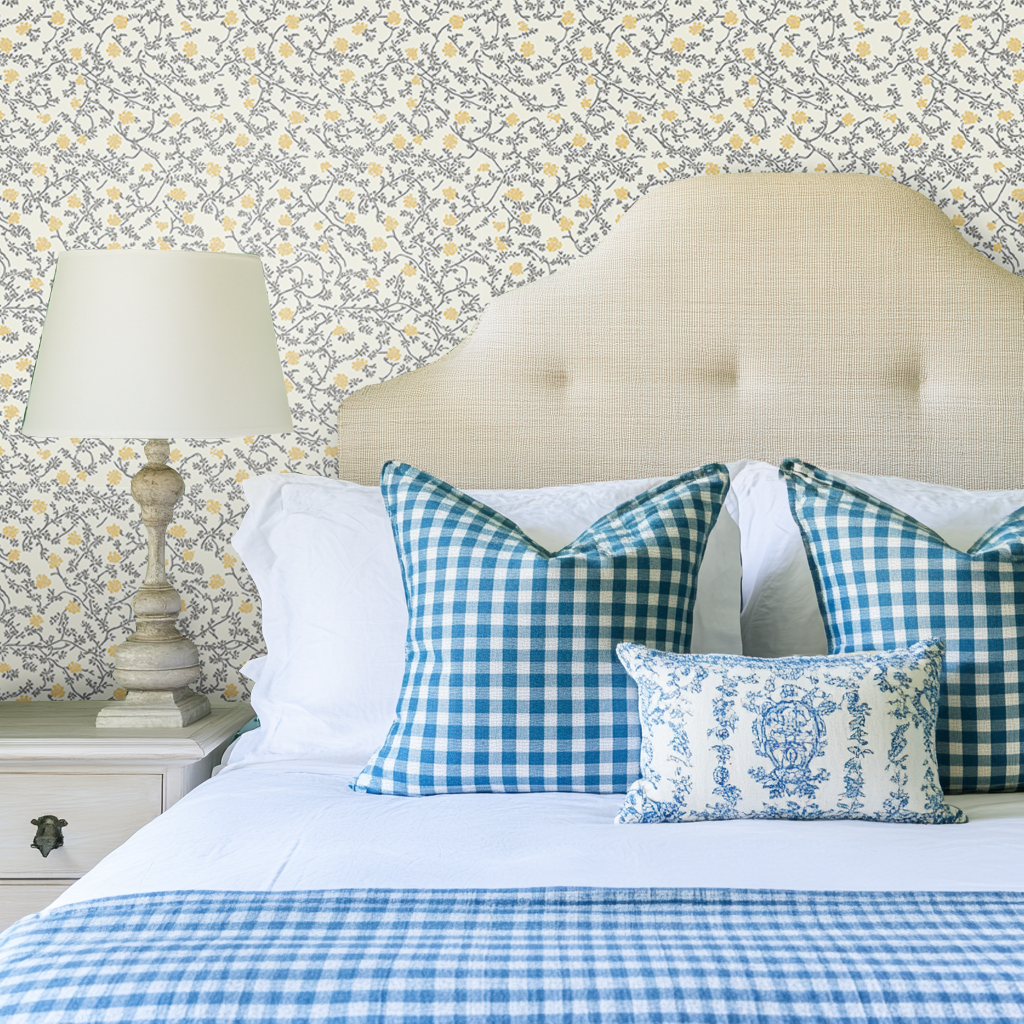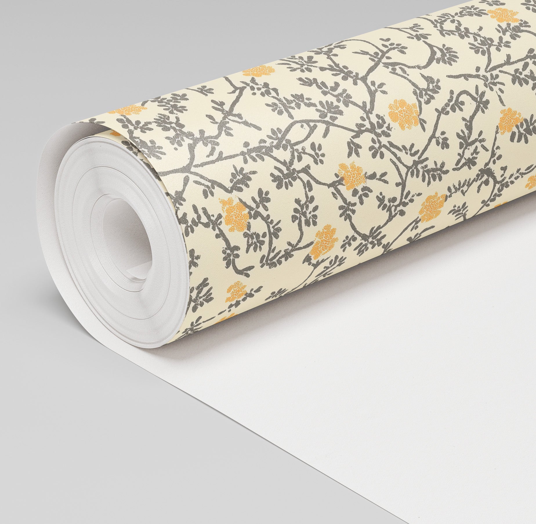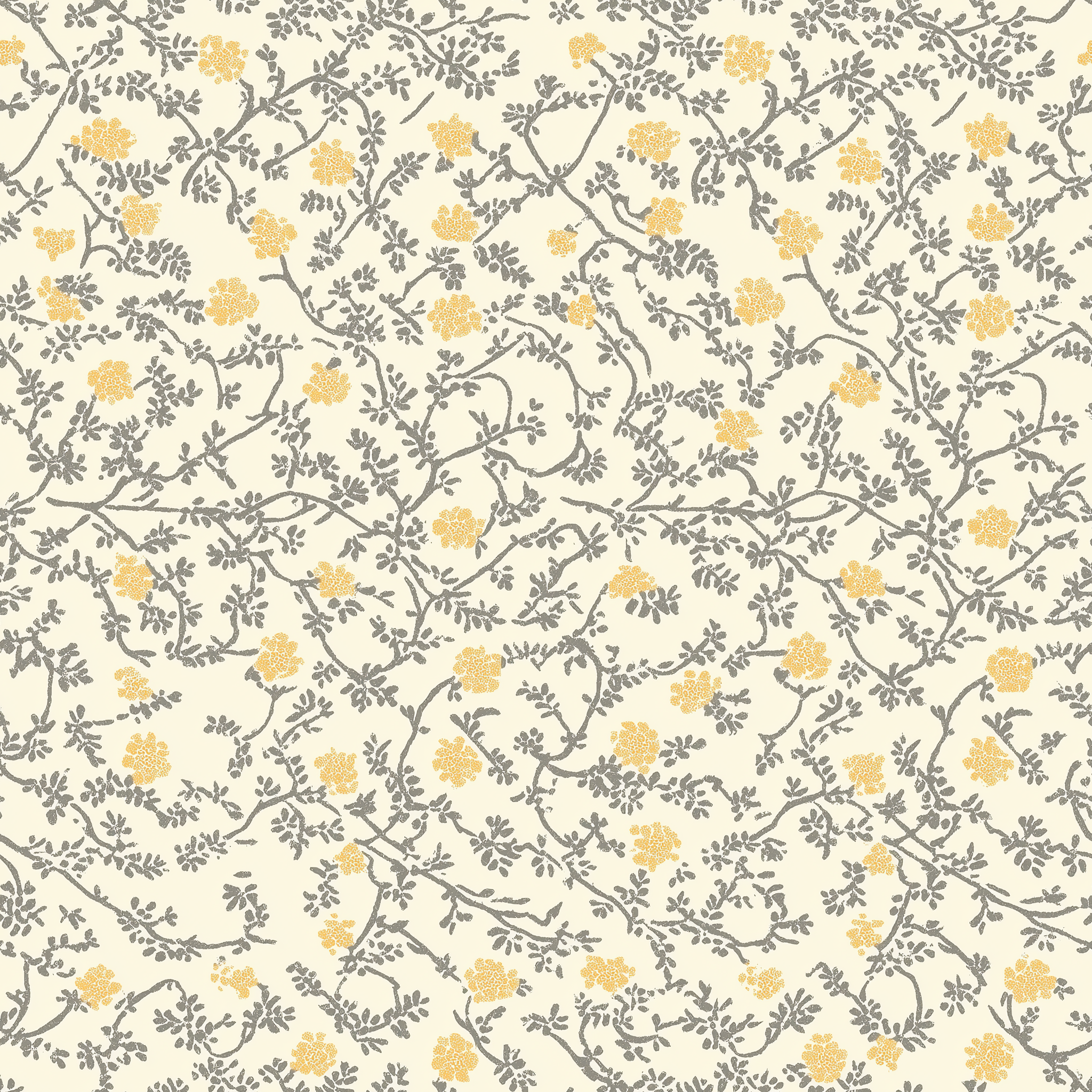 Golden Era is delicate and romantic, with tiny golden blooms woven through a web of soft gray vines. This vintage-inspired print feels timeless and elegant, perfect for adding warmth and subtle charm to your space.
