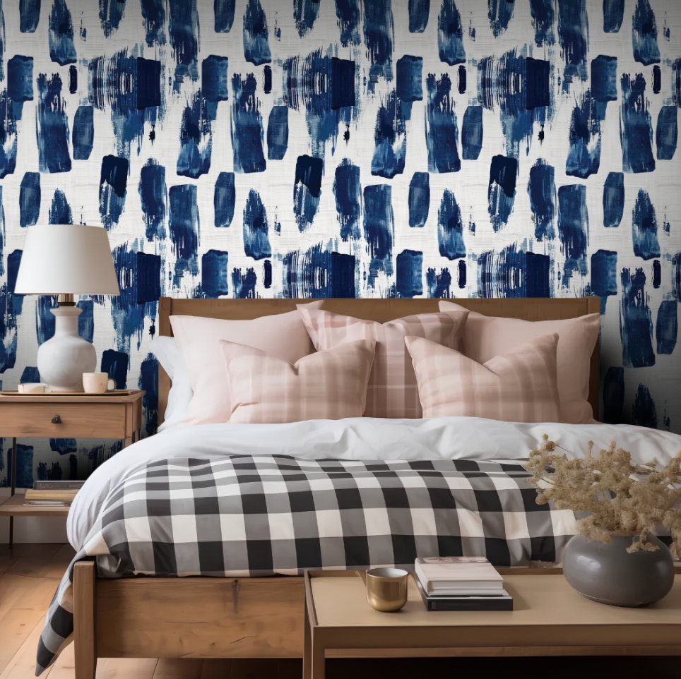 Harbor Wallpaper is a bold statement piece with its abstract, dynamic navy blue brushstrokes set against a crisp white background, embodying a modern, artistic vibe that transforms any space into a gallery of contemporary design.