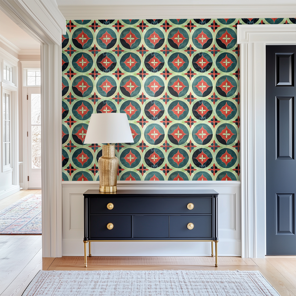 Enter the world of "Isabella Fleur-de-Lis," where vintage charm meets bold modern style. With its mix of rouge, jade, and pops of black, this wallpaper adds drama to any space. Perfect for the girl who loves to stand out, it's the ideal backdrop for your most memorable moments.