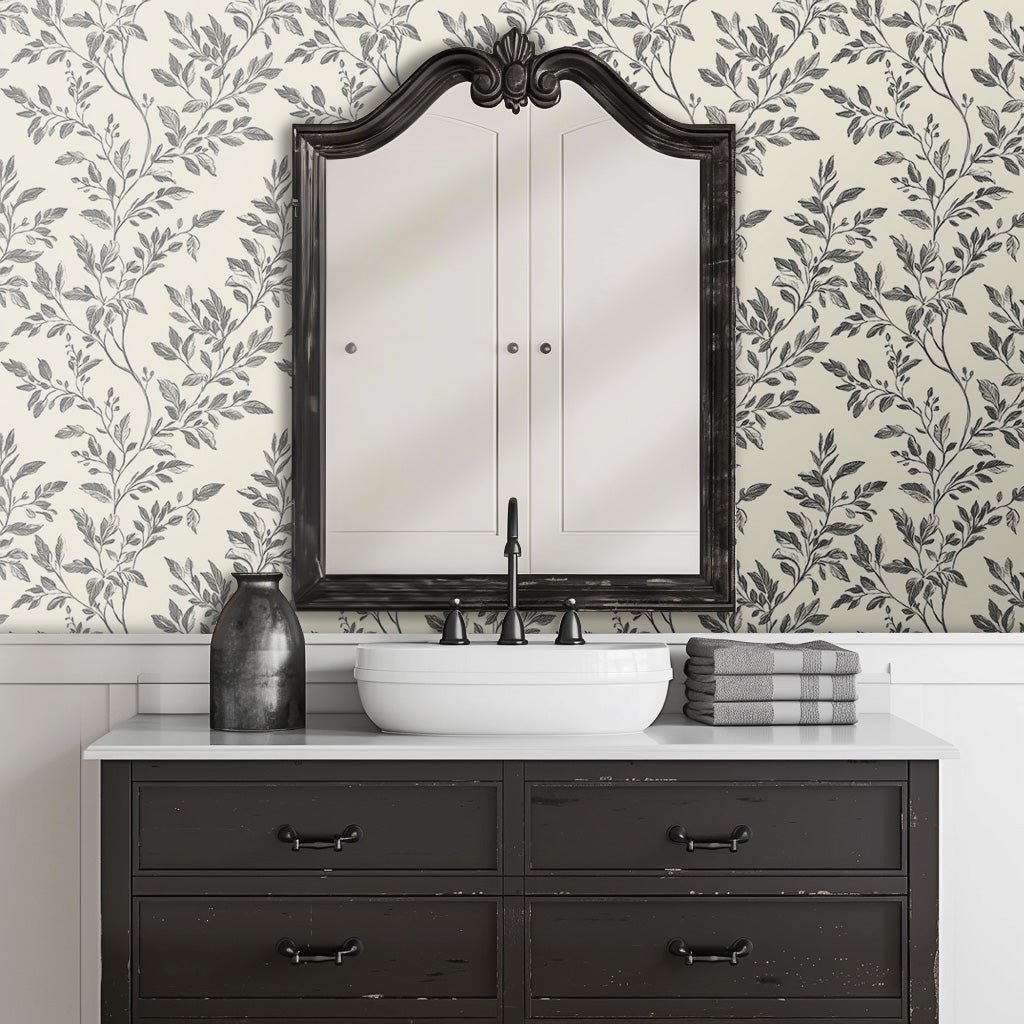 Leander: A sophisticated wallpaper featuring delicate charcoal botanical sketches on a creamy backdrop, offering a timeless and refined look for any room.
