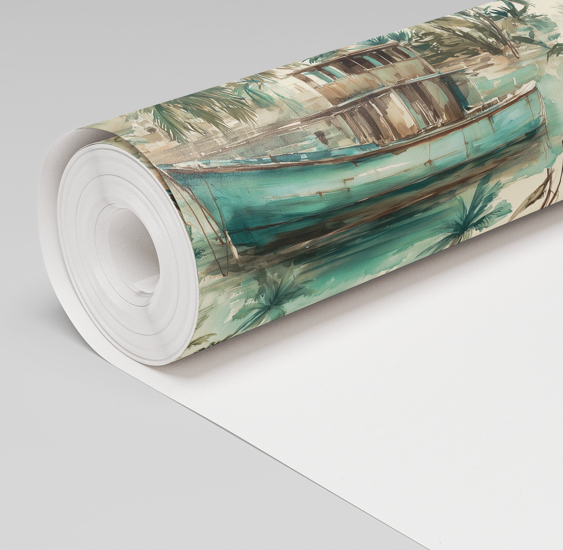 Transform your space with Lemus Wallpaper, featuring a serene coastal design that brings the tropics indoors. This stunning pattern showcases lush green palm trees and a charming boat motif, evoking the relaxed elegance of beachside living. Perfect for creating a refreshing accent wall or updating an entire room, this wallpaper captures the essence of tropical paradise while maintaining a sophisticated aesthetic. Ideal for bedrooms, living areas, or any space craving a touch of coastal charm and natural beauty.