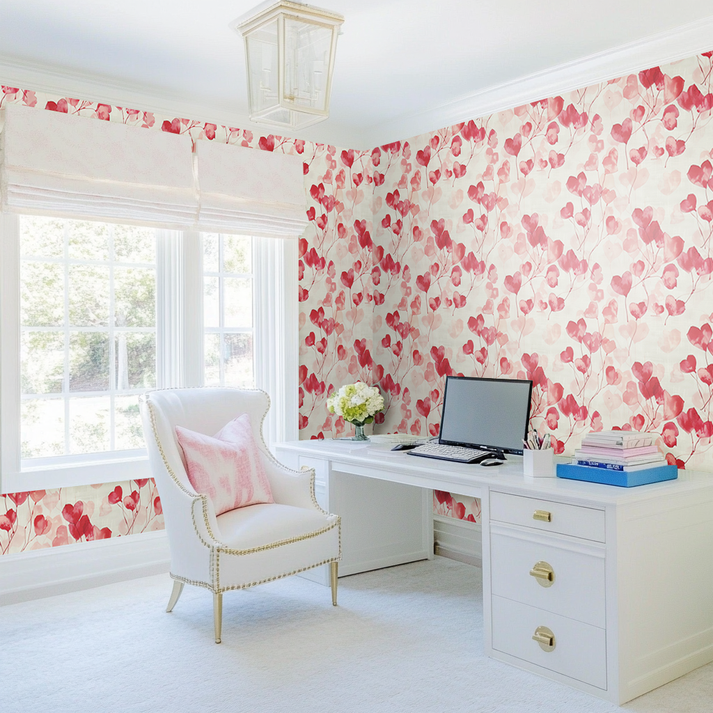 Introducing "Lily's Love Notes"- a romantic serenade of heart-shaped leaves in shades of passionate pink, adrift on a gentle off-white breeze. This wallpaper sings a ballad of love and whimsy for the sweetheart with a fondness for tender moments and dreamy decor.