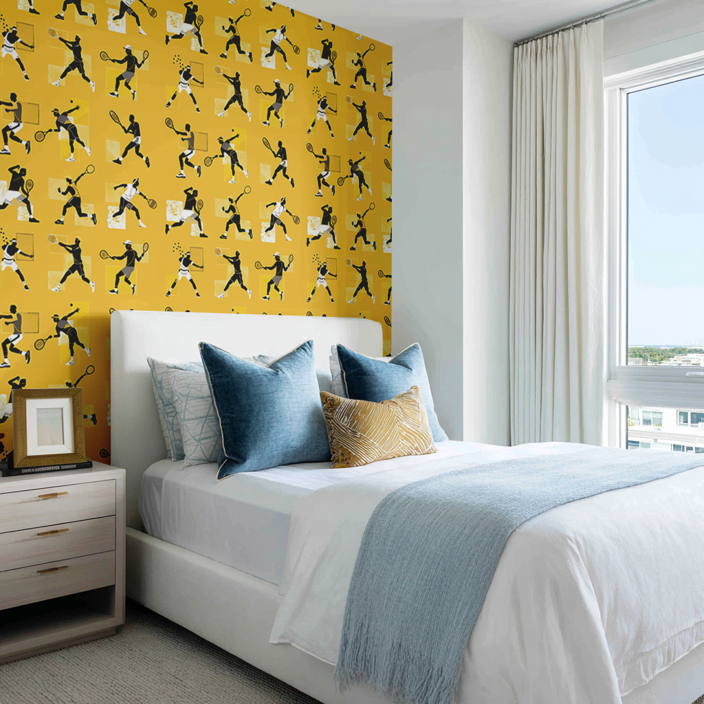 Matchpoint is a dynamic array of tennis stars captured in mid-swing, set against a court of vibrant yellow. This energizing wallpaper serves up an ace for sports enthusiasts and champions the invigorating spirit of the game in every detail.