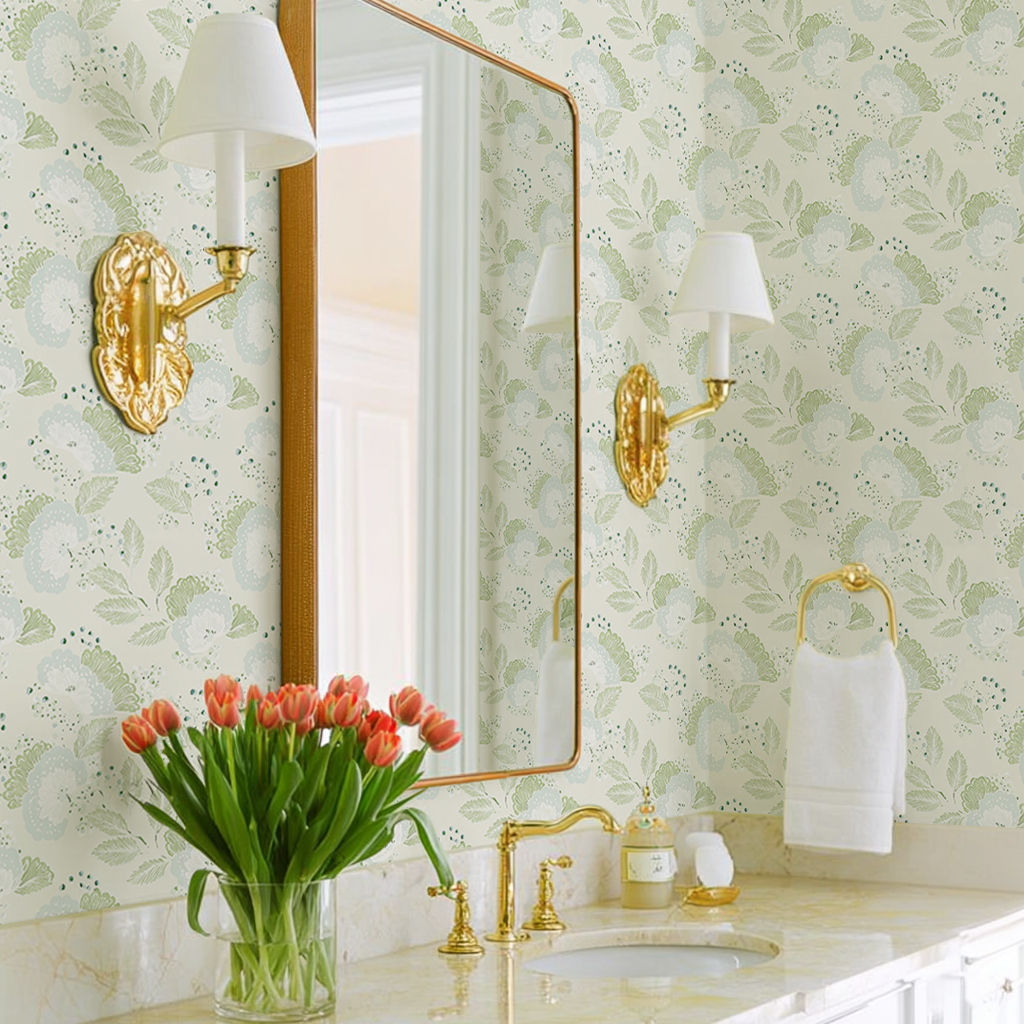 Add a touch of charm with "Mint to Be" wallpaper, featuring soft pastel blue blooms and fresh green leaves. This playful yet elegant design brings a chic, gentle vibe to any room, making your space feel pretty and inviting with a subtle, stylish flair. Perfect for those who love a delicate splash of color that’s both timeless and fun.