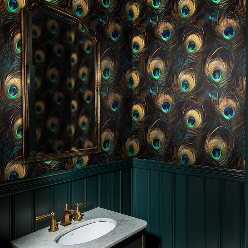Introducing the Nala Wallpaper: A luxurious and mesmerizing design inspired by the intricate beauty of peacock feathers. Featuring rich, jewel-toned blues, greens, and golds, this wallpaper brings an opulent and exotic flair to any space, perfect for creating a dramatic, high-impact look in your home.