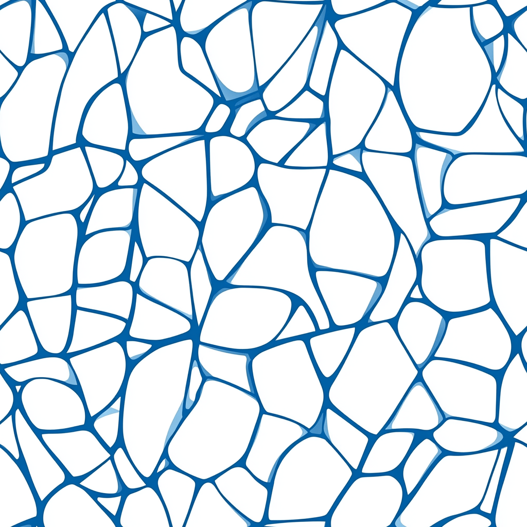 Introducing Nautis Wallpaper. This striking design features flowing blue lines that mimic water currents or sea glass patterns, weaving across a crisp white background. The irregular shapes and bold color give it an energetic, almost aquatic feel; perfect for bathrooms, coastal-inspired spaces, or any room that needs a splash of modern whimsy.