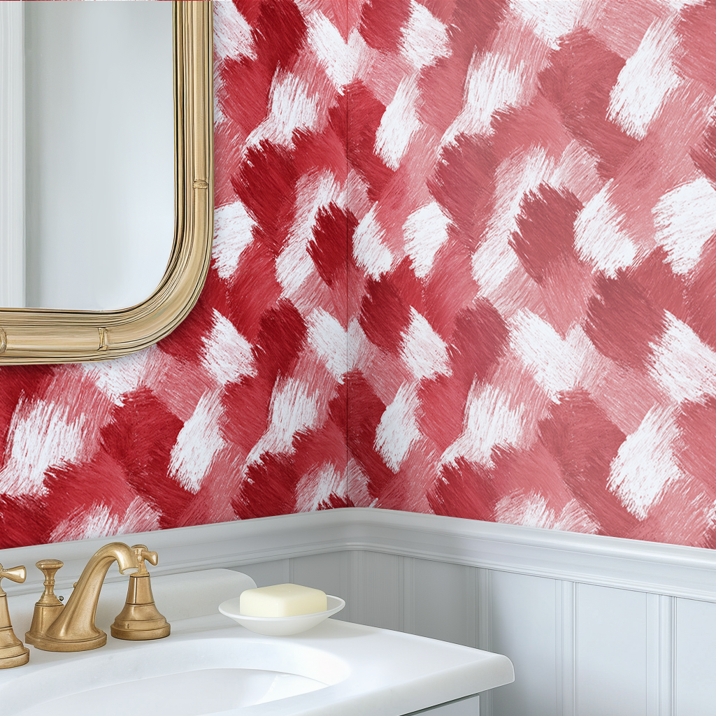 With its expressive brushstrokes in shades of crimson and white, this wallpaper has the energy of an abstract canvas. The layered texture creates movement and depth, making every wall feel like a piece of art. Ideal for contemporary spaces, it adds a bold artistic edge with modern sophistication.