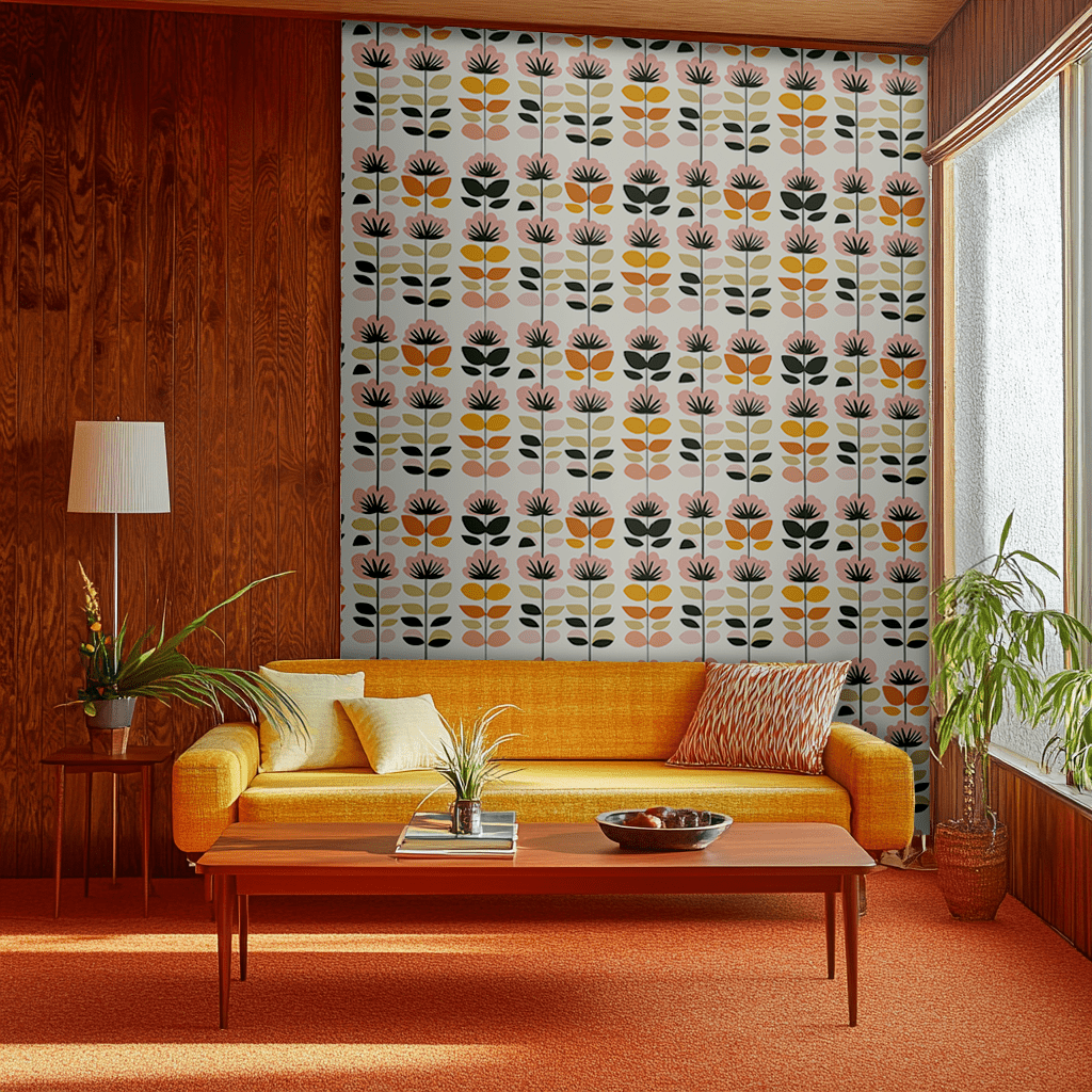 A playful fusion of minimalism and florals, Petal Power features stylized blossoms in soft, sunset-inspired hues. The delicate interplay of pink, peach, and olive tones creates a serene yet uplifting ambiance. Inspired by Scandinavian simplicity and retro botanical prints, this design is perfect for contemporary and vintage interiors alike. Bring a touch of nature and warmth to your space with this effortlessly stylish wallpaper.