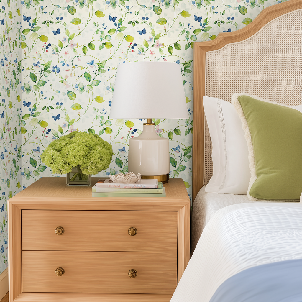 Our Peyton Wallpaper transforms your space into an enchanting sanctuary, where delicate butterflies flit amongst soft, watercolor florals. It's your own slice of paradise, promising a fresh start with every glance.