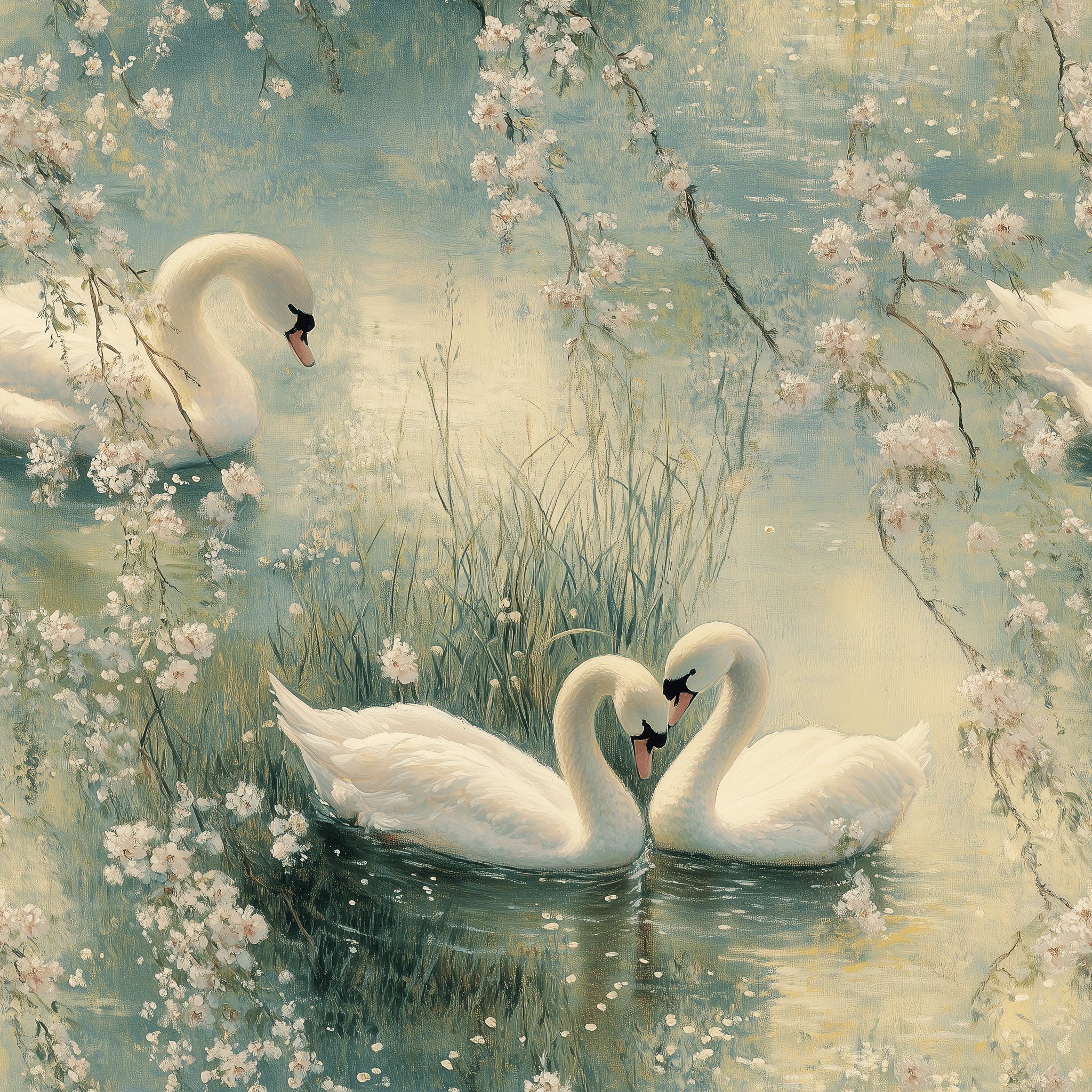 The Sabine wallpaper transports you to a tranquil waterside scene, where graceful swans glide beneath blossoming branches. Muted blue-green hues provide a serene backdrop, while soft pink florals add a touch of warmth. This design is perfect for creating a calming sanctuary, whether in a bedroom, reading nook, or spa-like bathroom. A balance of nature and elegance, Sabine is both peaceful and poetic.
