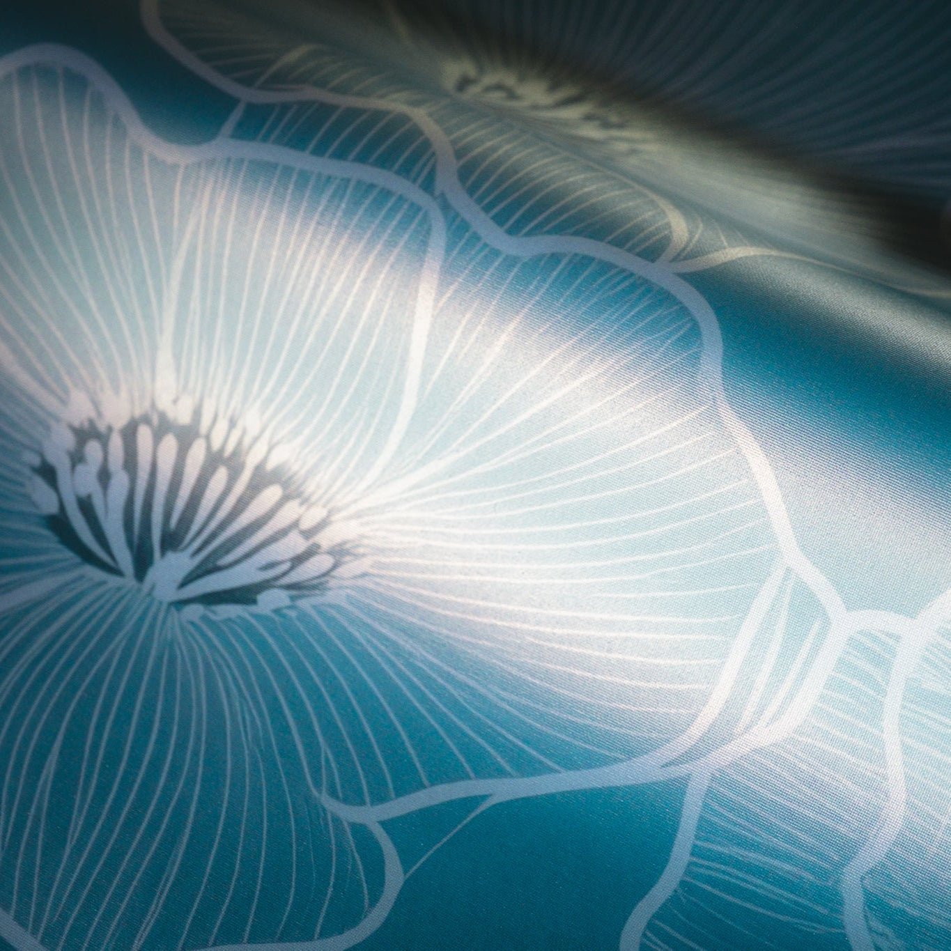 A soft, structured floral with just a hint of grandeur. St. George feels both vintage and modern, with sweeping white blooms on a muted blue ground. Try it in dining rooms, primary bedrooms, or a formal sitting area.