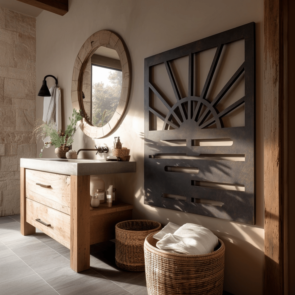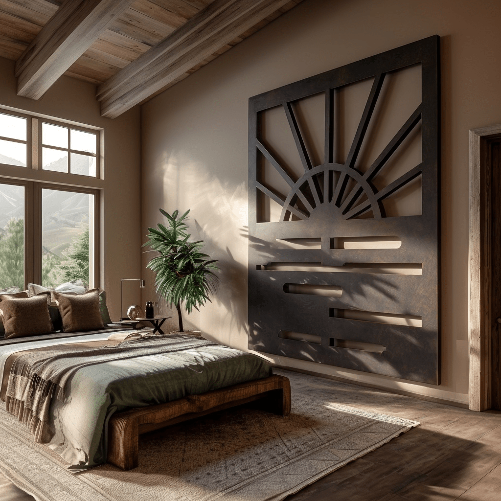 Your custom piece may vary slightly from the images, showcasing its unique character. - Thickness & Depth: Features a 1-inch bent steel border and sits just over 1 inch off the wall