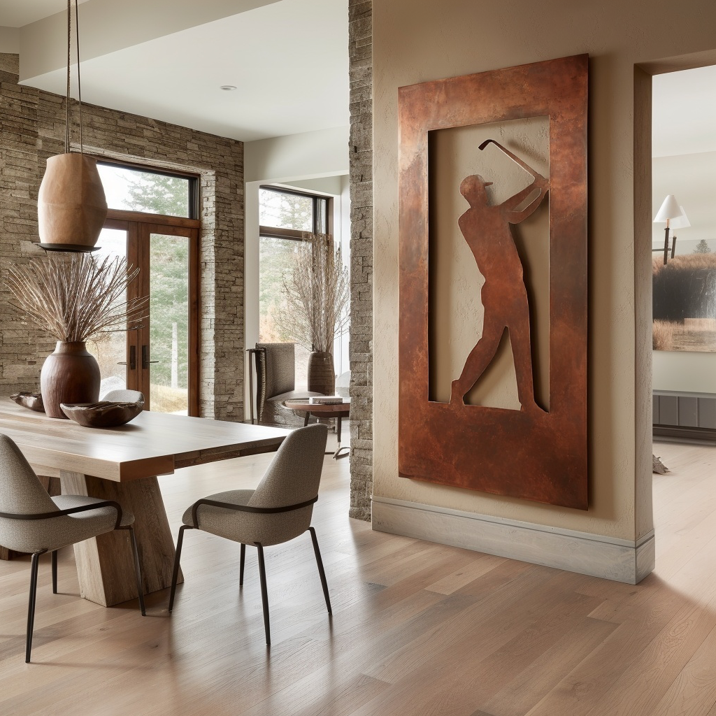 A lone golfer mid-swing, The Drive freezes the instant of power and precision as the club arcs toward the horizon. Clean lines and a grounded stance reflect the balance between focus and force that defines the game.
