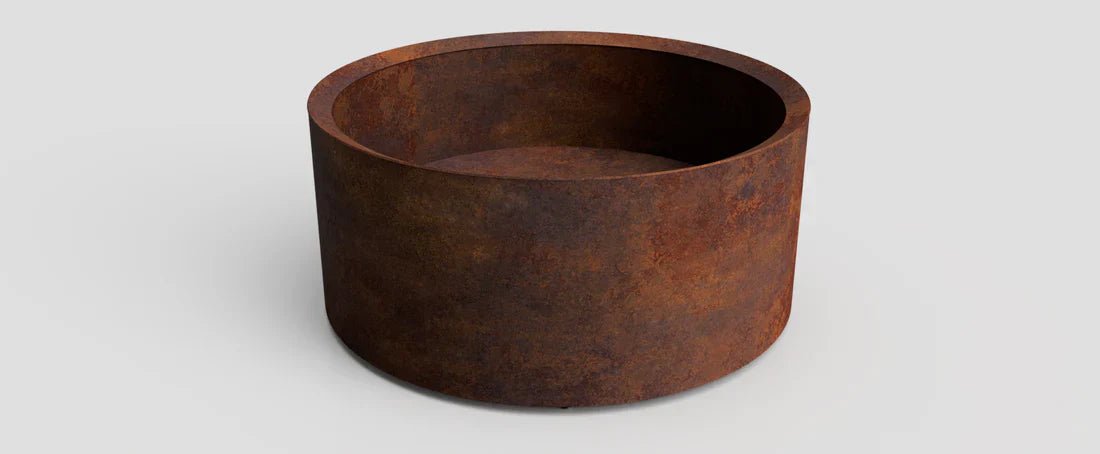 Raw steel finish fire pits are hand-crafted from durable and solid 14 gauge steel and have a drainage hole at the bottom for rain/water.