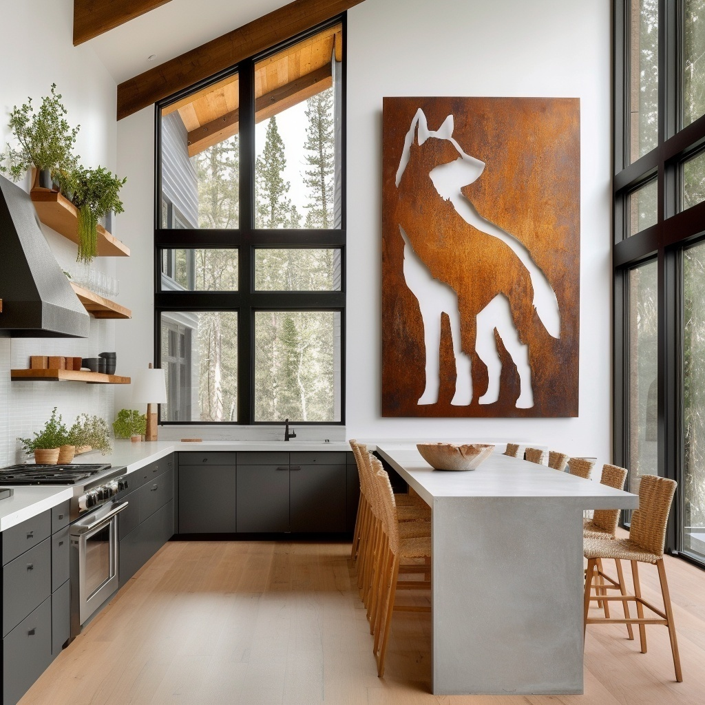 Your custom piece may vary slightly from the images, showcasing its unique character. - Thickness & Depth: Features a 1-inch bent steel border and sits just over 1 inch off the wall