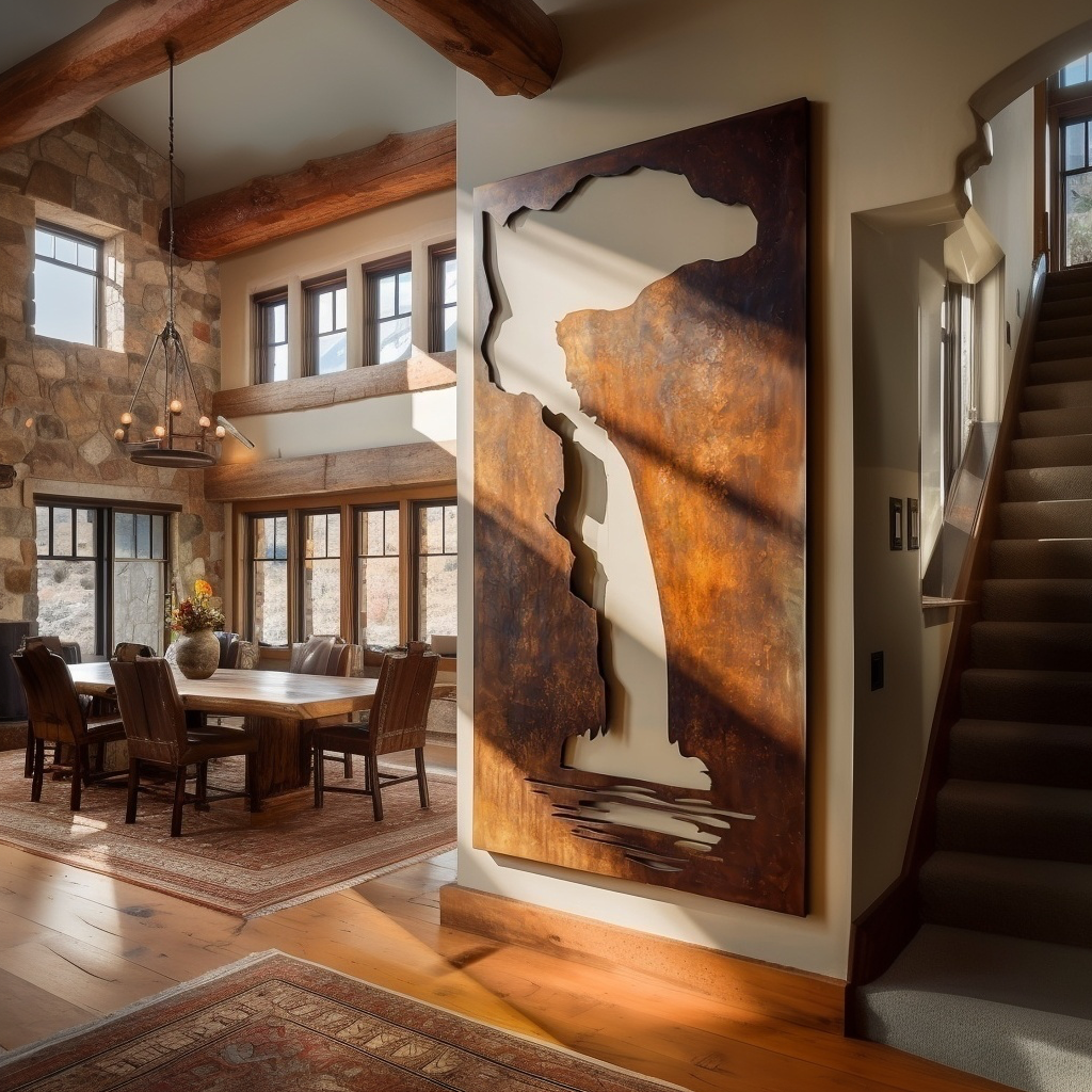 Your custom piece may vary slightly from the images, showcasing its unique character. - Thickness & Depth: Features a 1-inch bent steel border and sits just over 1 inch off the wall