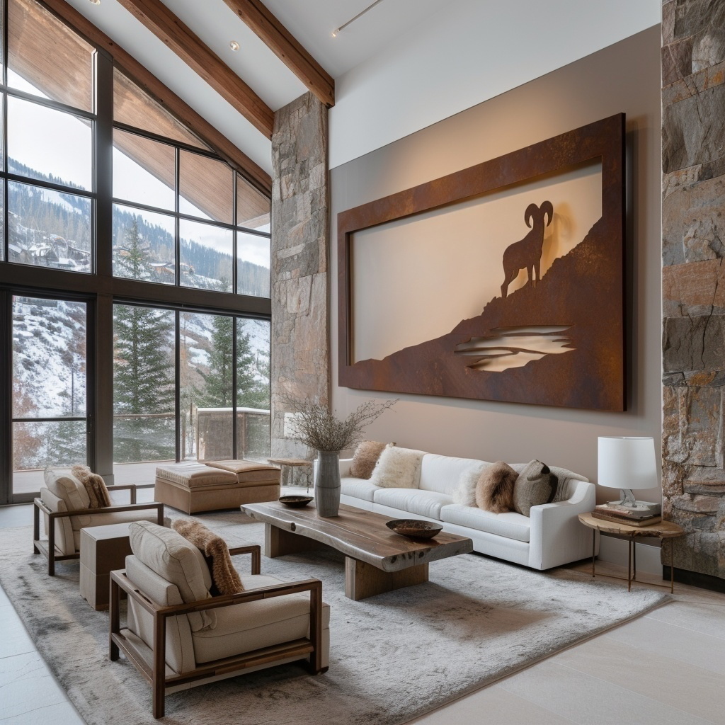 Perched above it all, The Highmark captures a lone bighorn ram at the crest of a ridge line; surefooted, still, and sovereign. A moment of altitude and silence carved in steel.