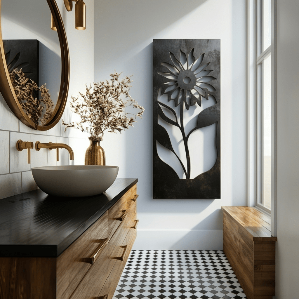 Your custom piece may vary slightly from the images, showcasing its unique character. - Thickness & Depth: Features a 1-inch bent steel border and sits just over 1 inch off the wall