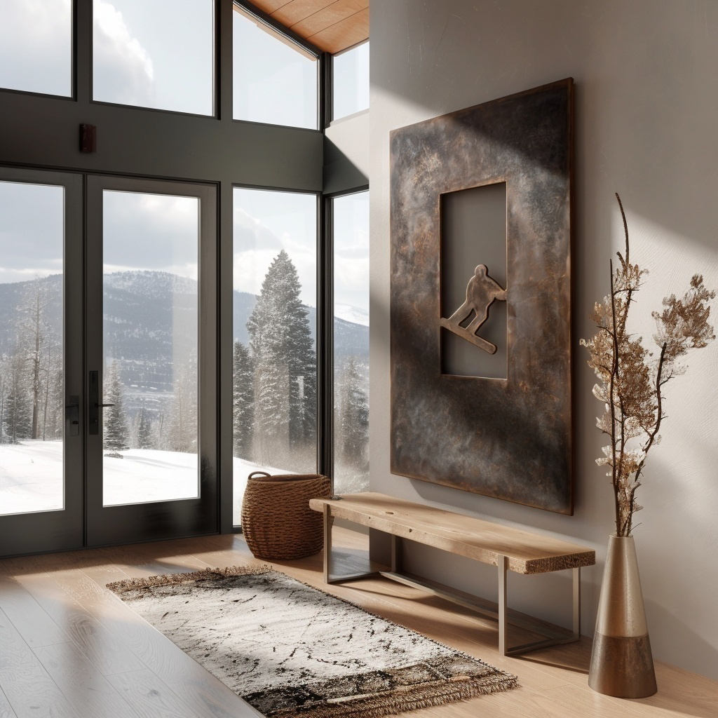 A lone rider catches air mid-turn, framed in steel like a snapshot from a powder day. The Kicker is all motion. It’s winter cut into shape, quick and clean.