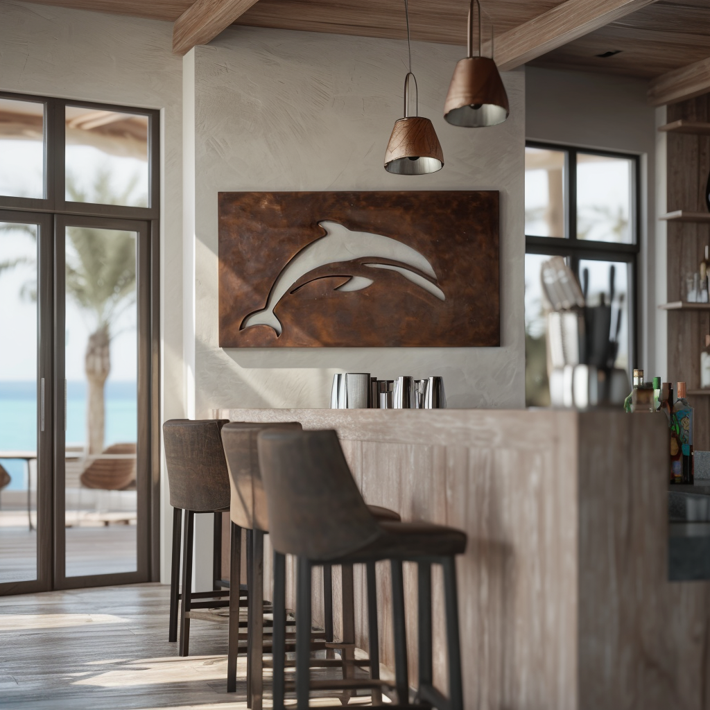 A sleek dolphin arcs upward in mid-jump, its form captured in a moment of effortless grace. The Leap embodies the joy and fluidity of ocean life, where motion and freedom meet in a single, soaring curve.