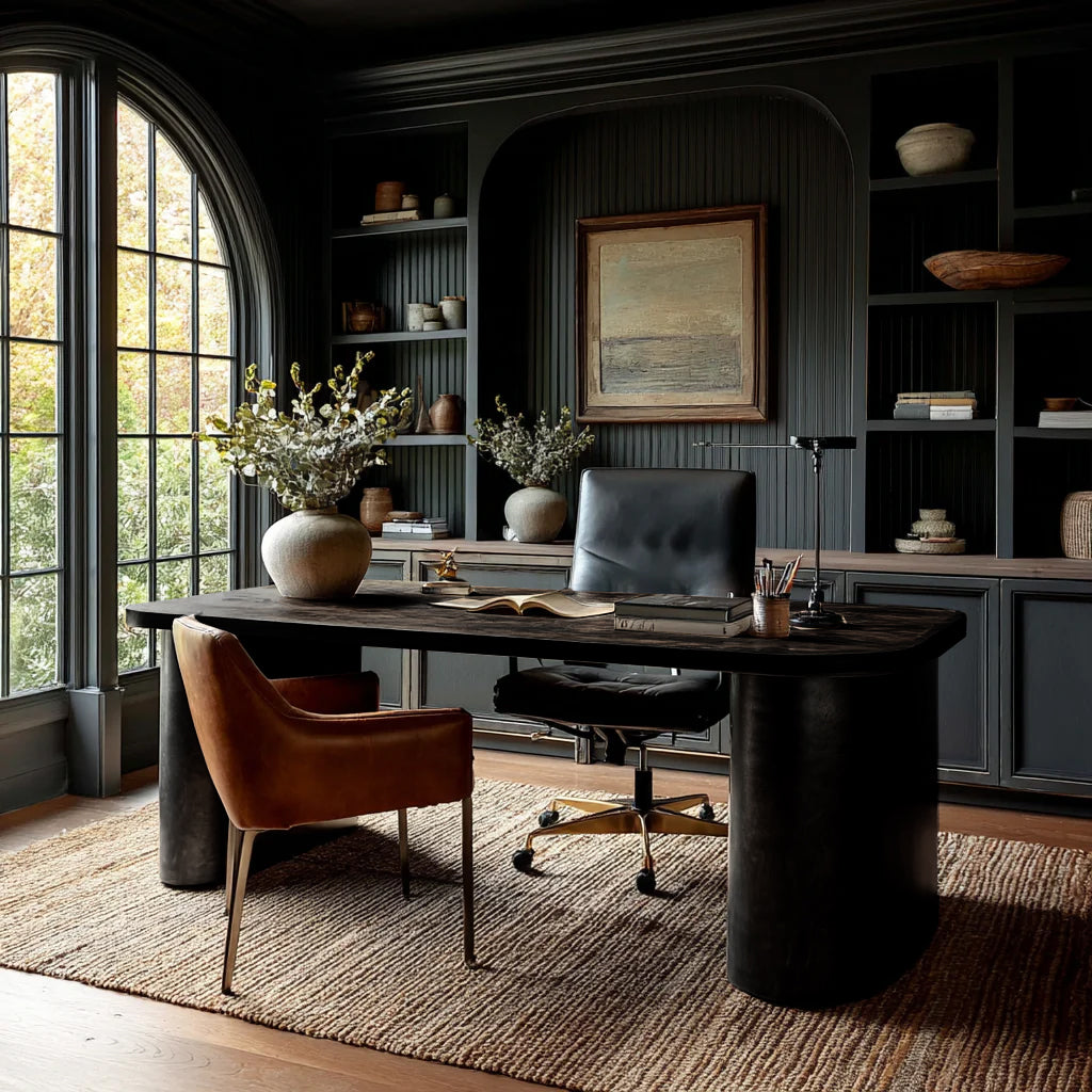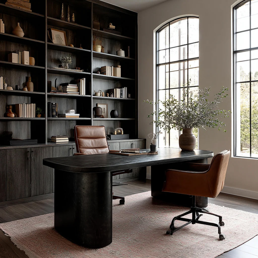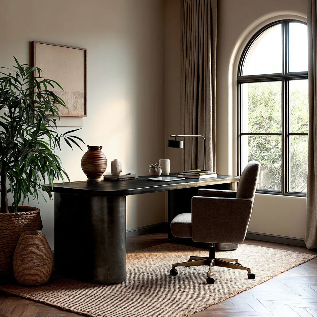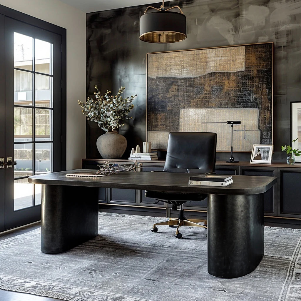 Indulge in the ultimate luxury with The Lincoln Desk. Carefully hand crafted and designed to elevate your office space. This American made bespoke desk features an elegant rounded base that adds sophistication to any room.