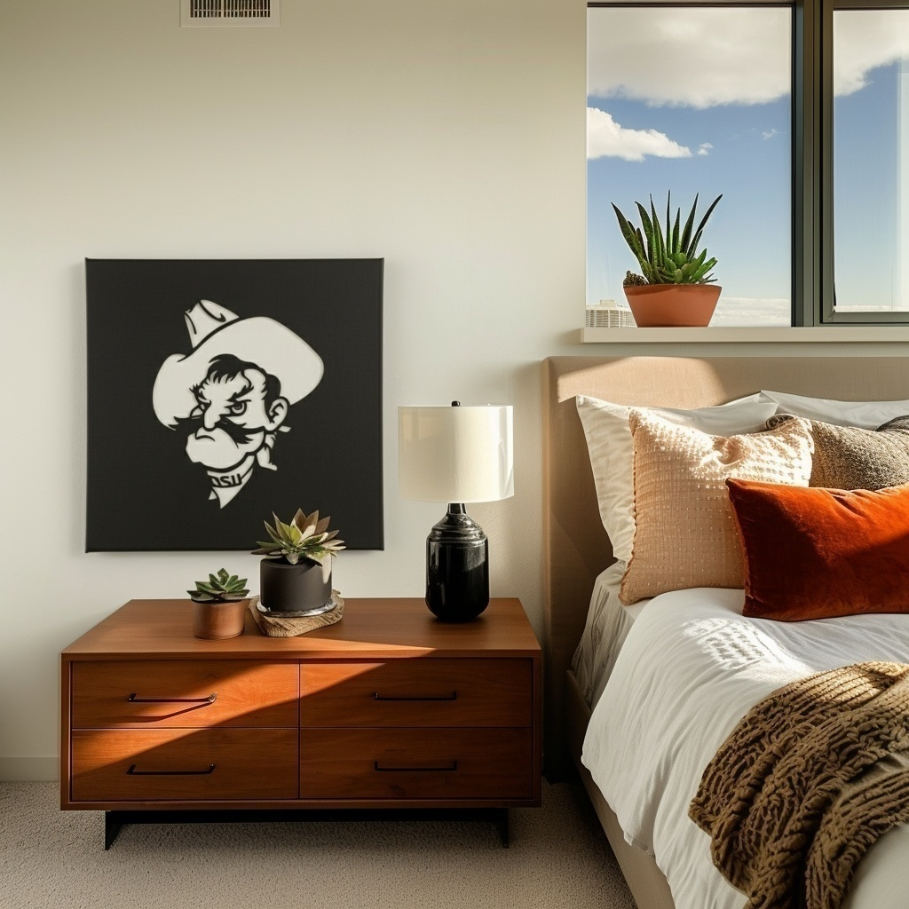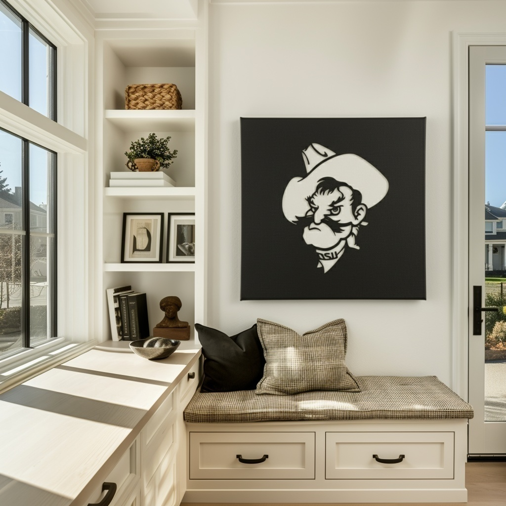 A bold tribute for devoted Cowboys fans, this steel-cut wall art showcases the iconic mascot with striking detail. Crafted from solid steel and mounted for depth, it casts a sharp shadow that makes the piece come alive in any space.