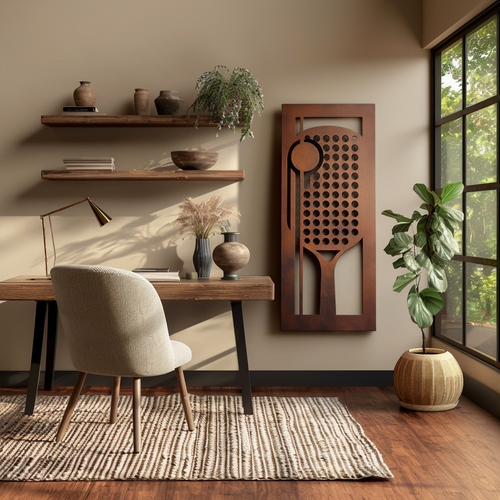 Your custom piece may vary slightly from the images, showcasing its unique character. - Thickness & Depth: Features a 1-inch bent steel border and sits just over 1 inch off the wall