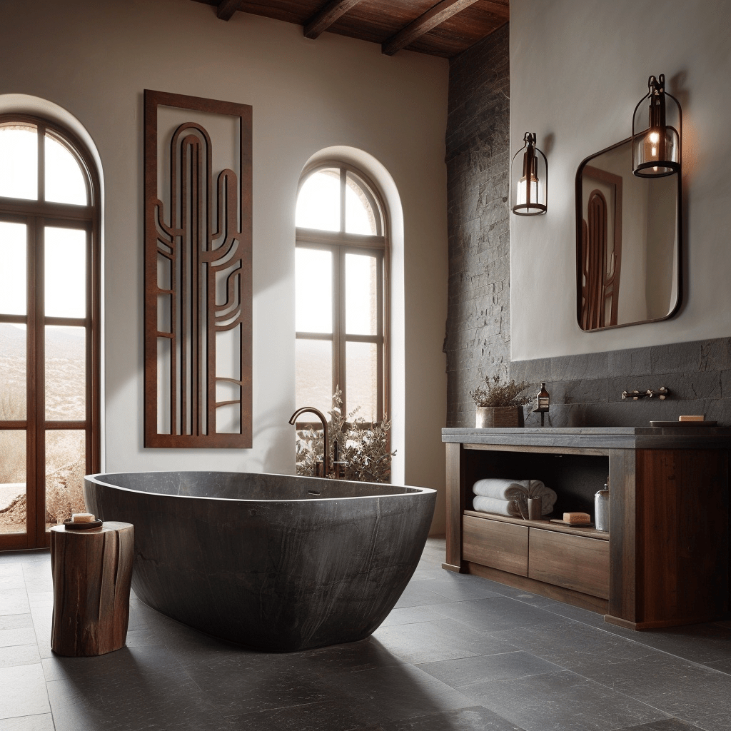 A vertical silhouette of a towering saguaro cactus, The Spine rises with quiet strength and rhythm. Its clean, linear form evokes both the structure of a desert sentinel and the backbone of the land itself.