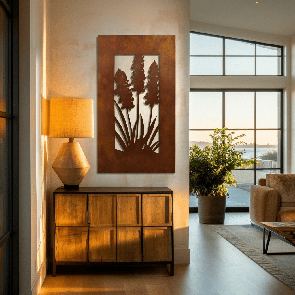 Your custom piece may vary slightly from the images, showcasing its unique character. - Thickness & Depth: Features a 1-inch bent steel border and sits just over 1 inch off the wall