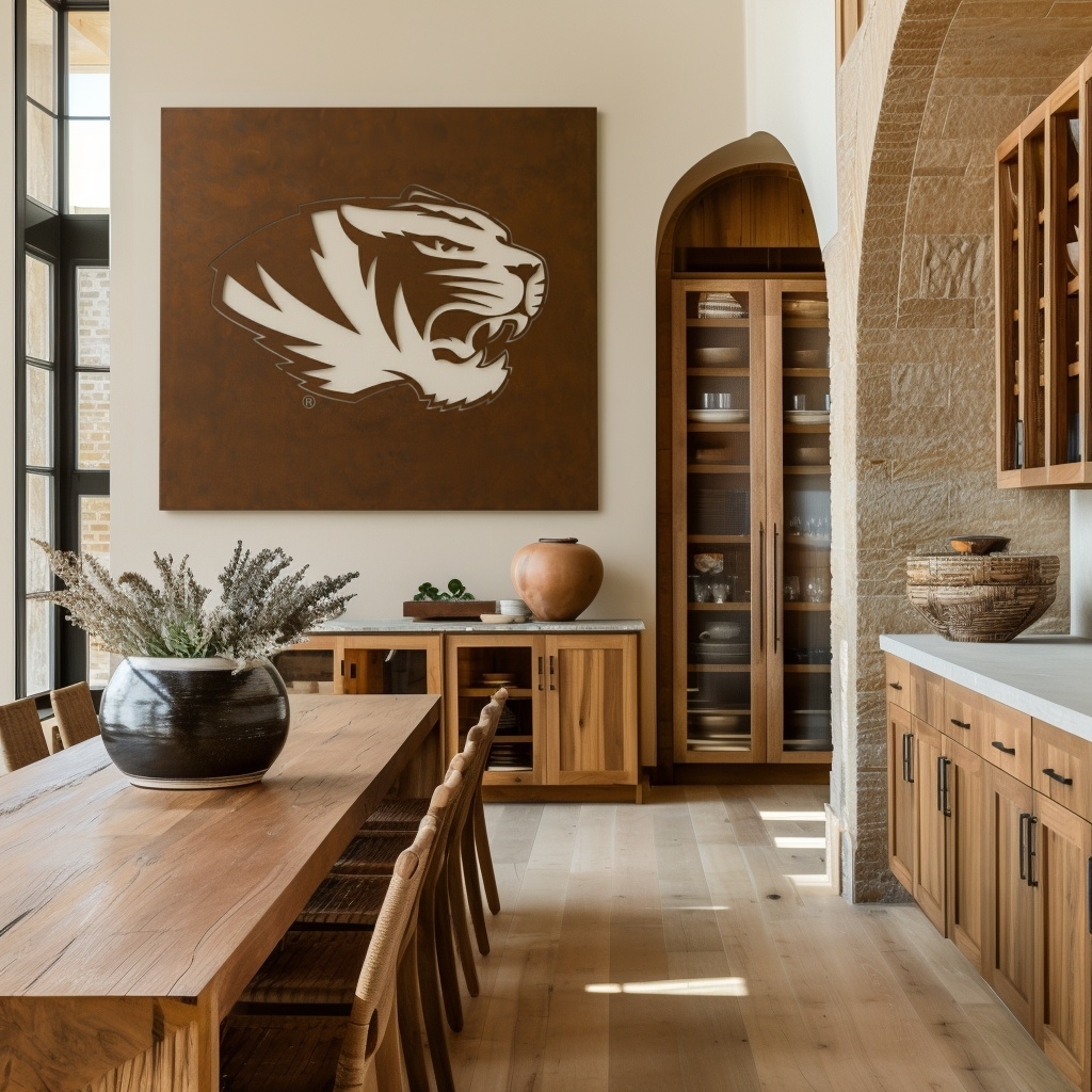Showcase your Tiger pride with this striking metal wall art featuring the University of Missouri’s iconic tiger logo. Crafted from durable steel with precision detailing, it’s a bold centerpiece for any fan’s home, office, or game-day space.