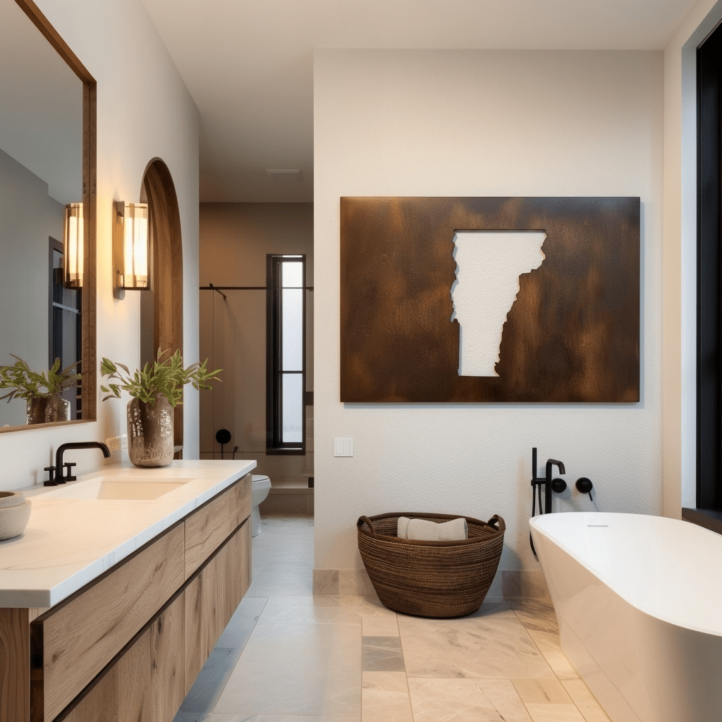 The Vermont highlights the state’s distinctive silhouette with refined clarity. Its clean edges and balanced form pay homage to the region’s quiet charm and timeless character.