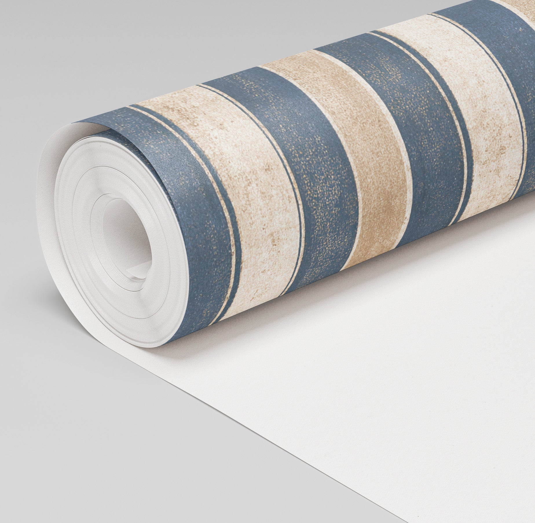 Tillinghast brings a timeless stripe to life with weathered texture and balanced tones of denim blue and warm taupe. The hand-finished look gives each line subtle depth and character, creating a classic pattern that feels tailored yet relaxed, perfect for spaces rooted in tradition and ease.