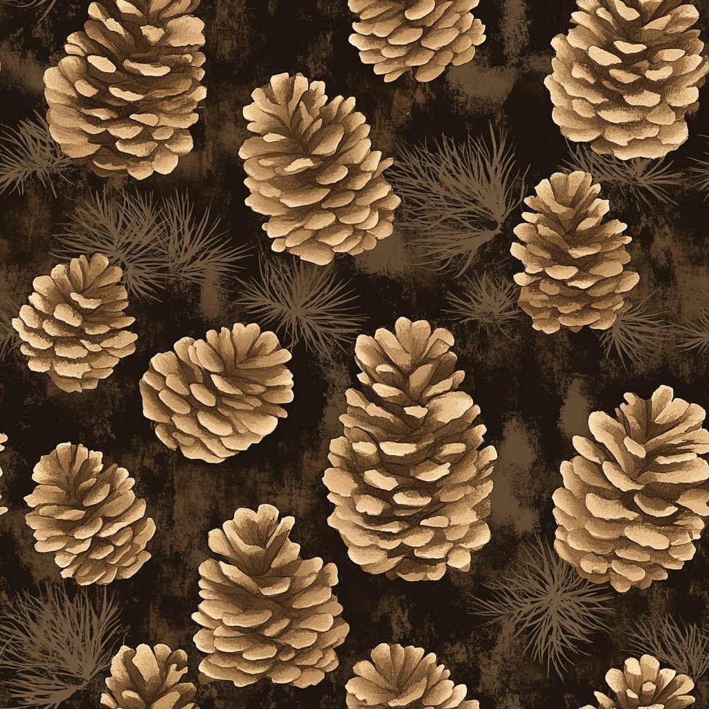 The Woodland Noir wallpaper captures the essence of a forest retreat with its striking pinecone design against a deep, rich background. The earthy brown tones and intricate detailing create a cozy, rustic feel that brings warmth to any room. Ideal for accent walls or study spaces, this pattern adds depth and a touch of nature's charm. It evokes calm and simplicity, making your space feel inviting and serene.